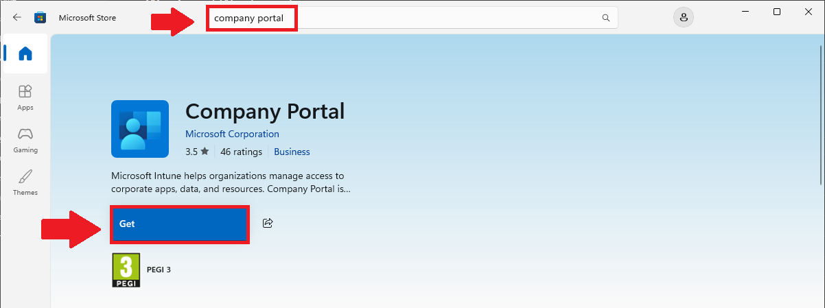 - Click Get to install the Company portal