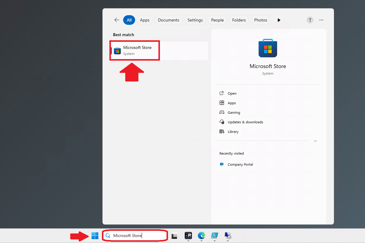In the Windows Start Menu, search for the Microsoft Store