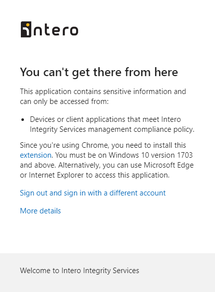 After entering a work email address and password, the sign-in fails and an error message is shown.