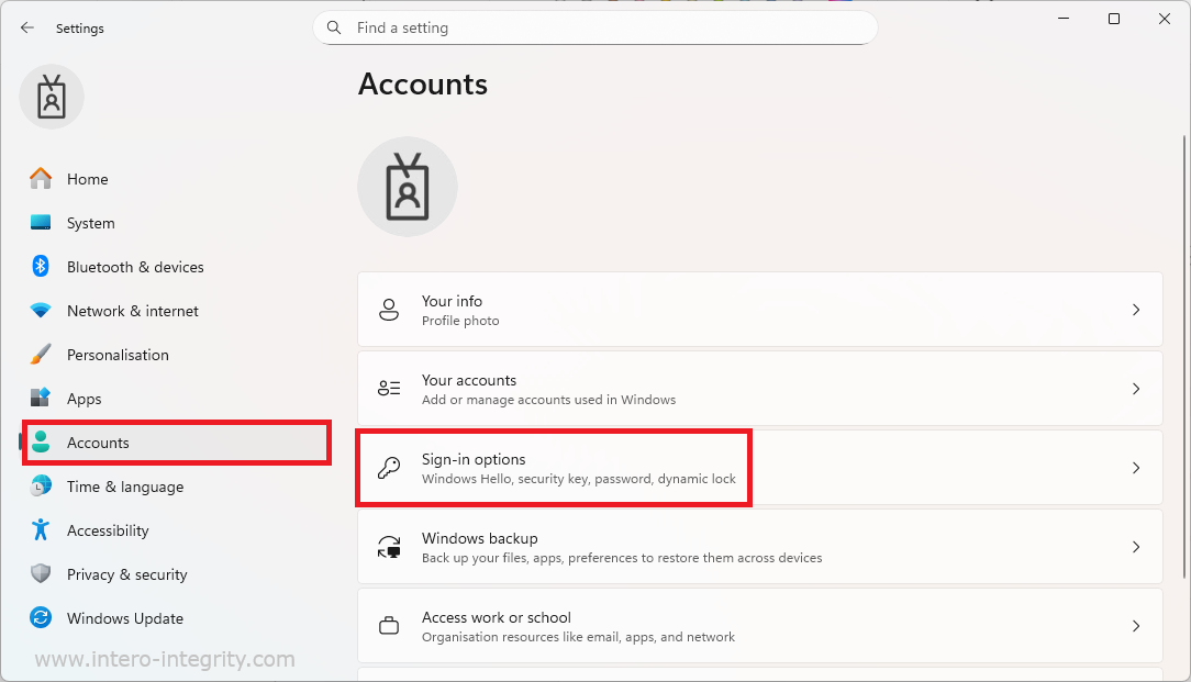 In the Accounts pane, select Sign-in options.