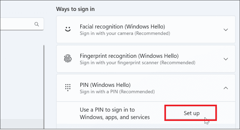 You will now see “Windows Hello PIN” listed with a status of Set up.