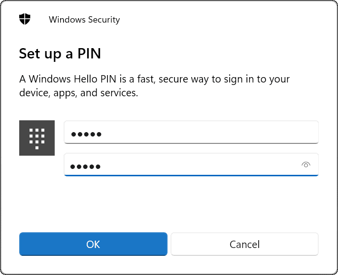 Using a Windows Hello PIN allows you to sign in to your device quickly and securely with a numeric code.
